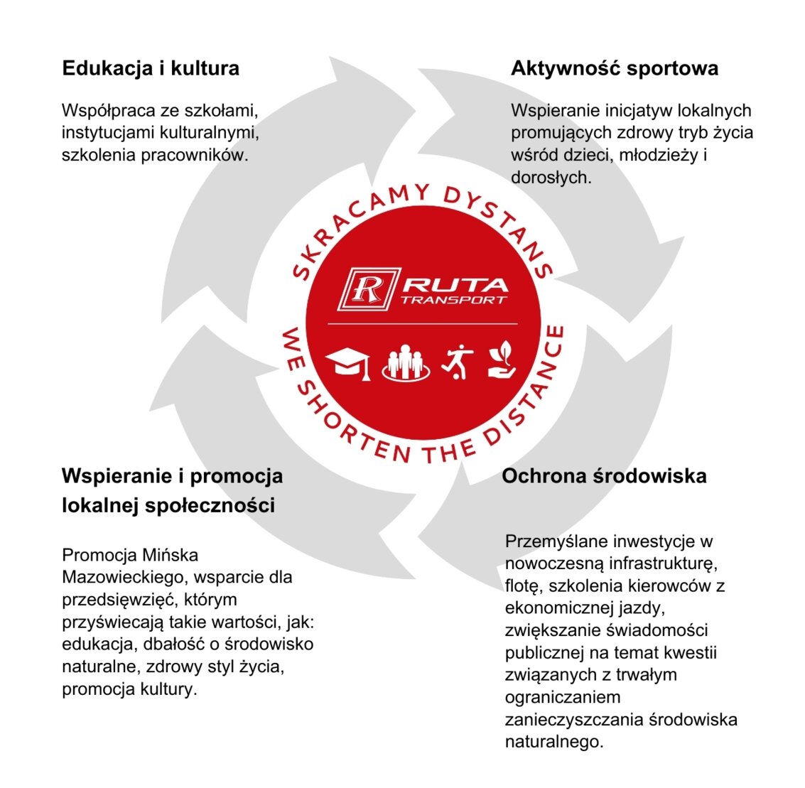 Poza działalnością operacyjną firma angażuje się w akcje społeczne. Wspiera wiele przedsięwzięć ukierunkowanych na następujące obszary: